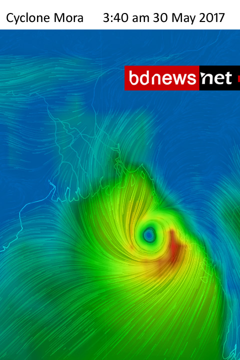 এই রিপোর্ট লেখা পর্যন্ত সকাল চারটা ৩০ মে ২০১৭ বর্তমানে ঘূর্ণিঝড় মোরার কেন্দ্রস্থল টেকনাফ থেকে ৮৫ কিলোমিটার , কক্সবাজার থেকে ১২৪ কিলোমিটার , স্বন্দিপ থেকে ২২৩ কিলোমিটার , হাতিয়া থেকে ১৮০ কিলোমিটার ও সেইন্ট মারটিন দ্বিপ থেকে ৭০ কিলোমিটার দূরে অবস্থান করছে ।